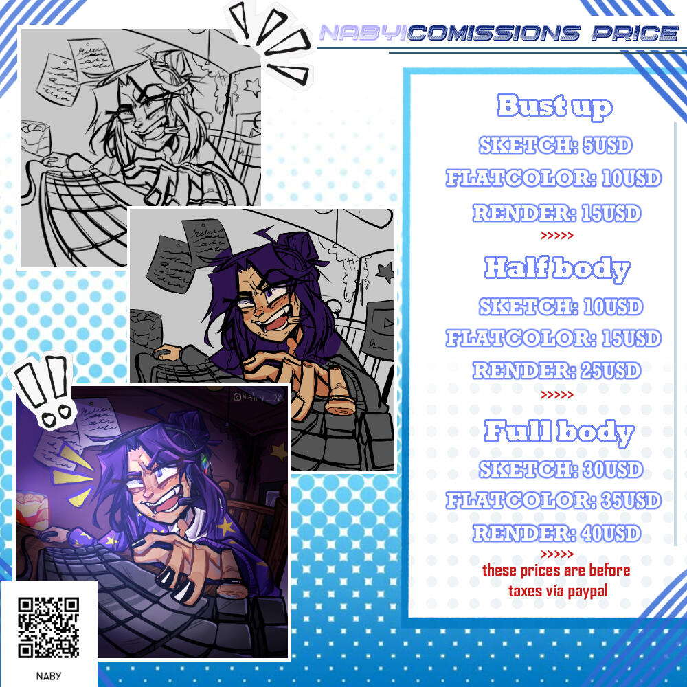 ✶I charge 100% of the commission upfront, this helps me avoid issues with scammers or similar situations.✶Payments will be made only through PayPal invoices, which will be sent to the commissioner’s email. If you are from Argentina, we can arrange an alternative and proceed through a card deposit.✶I do not issue refunds once I’ve started the commission, so please be sure before purchasing my services.✶If you decide to cancel the commission before payment, that’s completely fine, but please let me know in advance.**✶A commission may take anywhere from 2 weeks to 1 month, **depending on the complexity of the piece or the current queue.